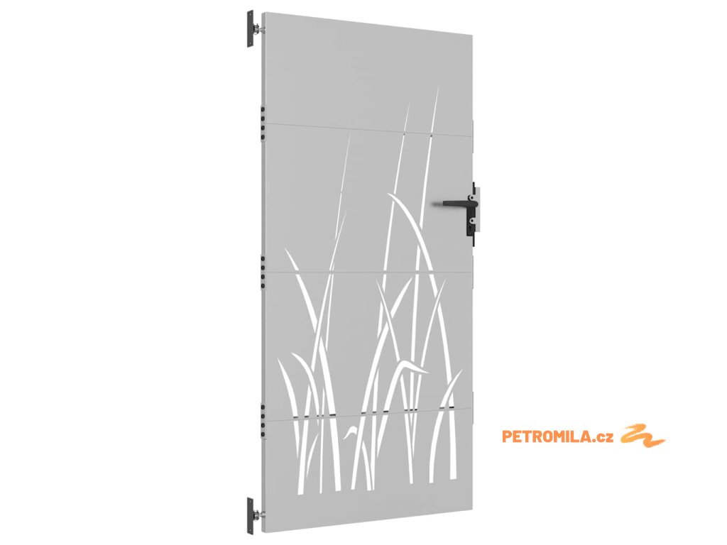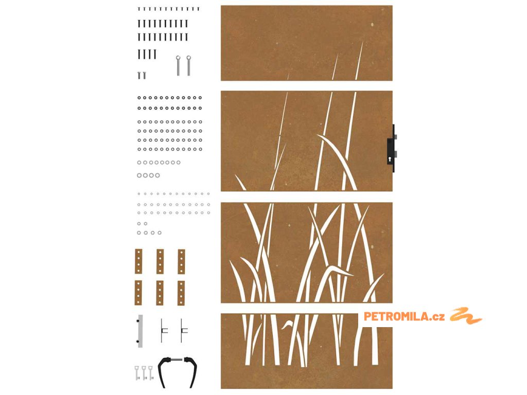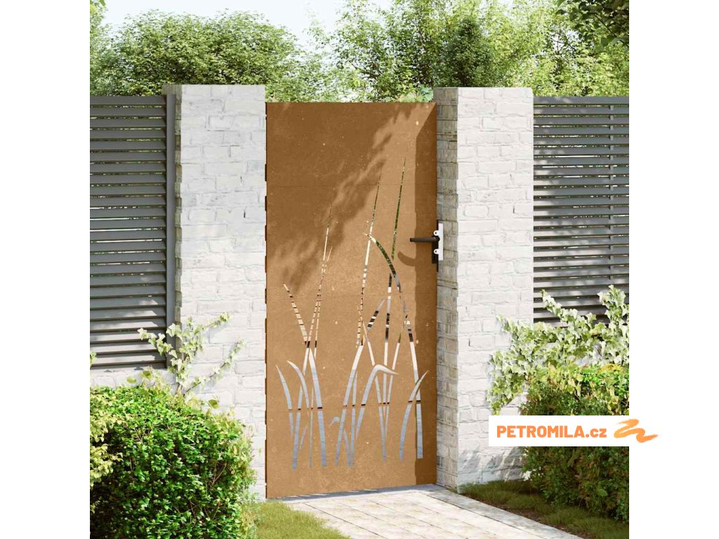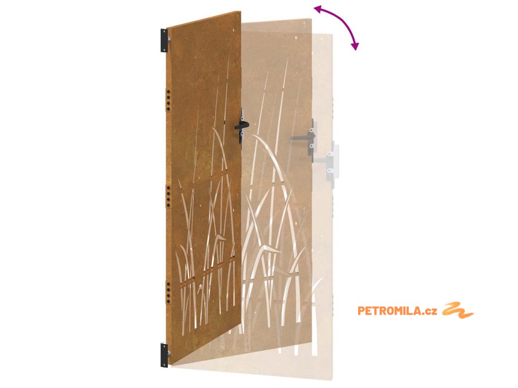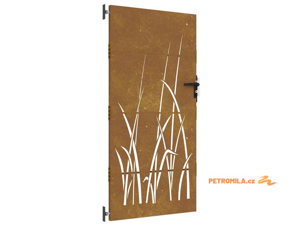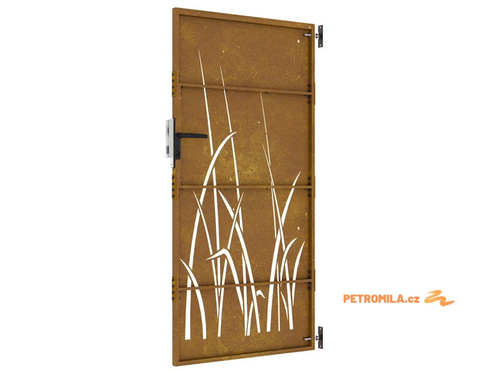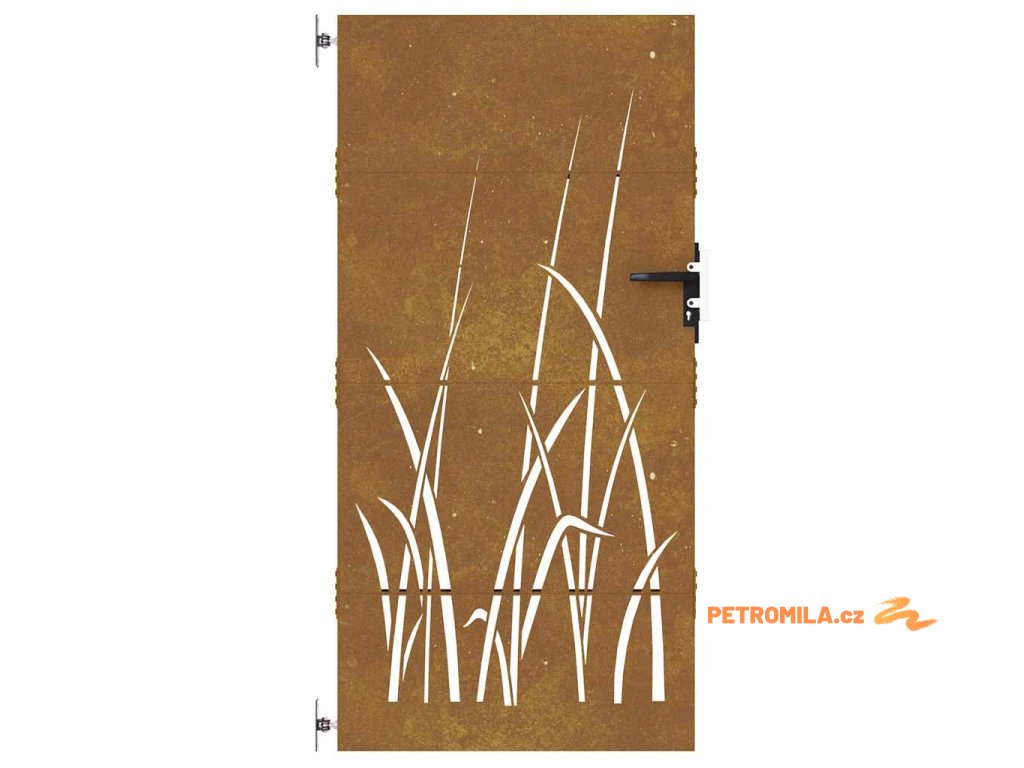 Zahradní branka 85 x 200 cm cortenová ocel Tráva
