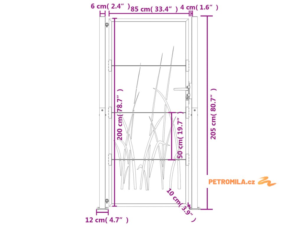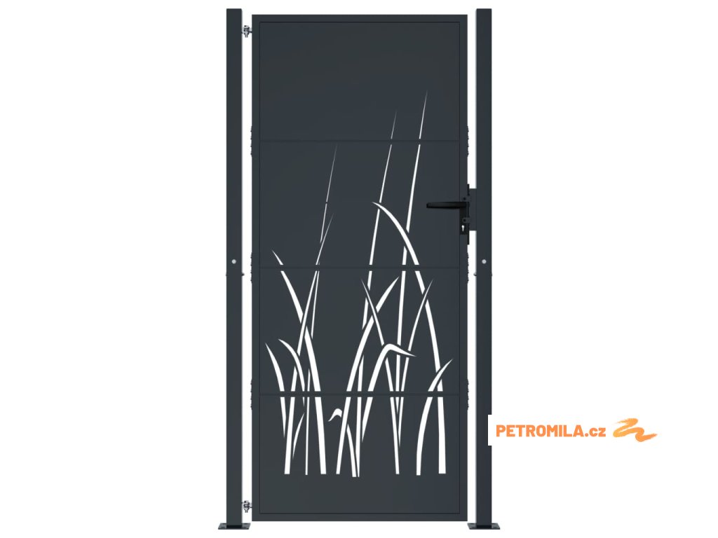 Zahradní branka antracitová 105 x 205 cm ocelová, design trávy