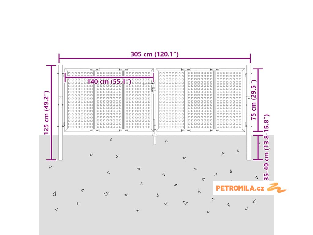 - Celkové rozměry brány: 300 x 125 cm (Š x V)
