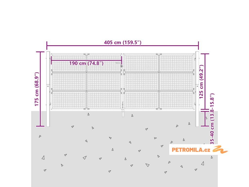 - Celkové rozměry brány: 400 x 175 cm (Š x V)