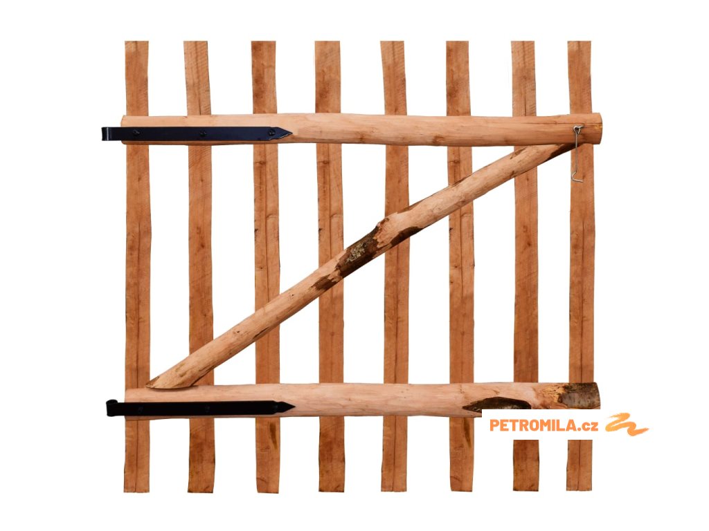 Pevná plotová branka je vyrobena ze svislých sloupků a latěk, které jsou vodorovné i příčné, takže je pevná, stabilní a hodně toho vydrží. Zahradní branka se dodává s kovovými panty, šrouby a háčkem.