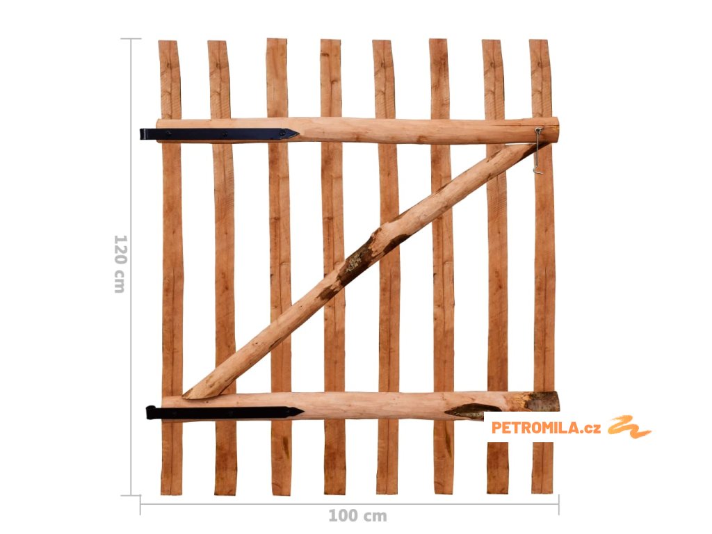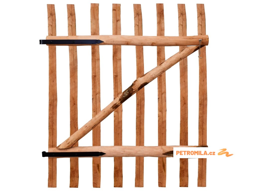 Pevná plotová branka je vyrobena ze svislých sloupků a latěk, které jsou vodorovné i příčné, takže je pevná, stabilní a hodně toho vydrží. Zahradní branka se dodává s kovovými panty, šrouby a háčkem.