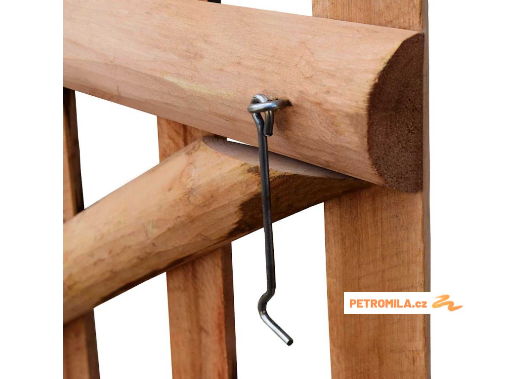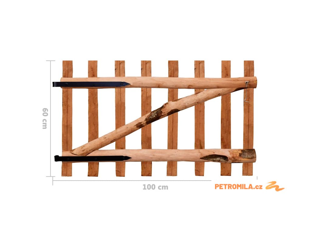 Pevná plotová branka je vyrobena ze svislých sloupků a latěk, které jsou vodorovné i příčné, takže je pevná, stabilní a hodně toho vydrží. Zahradní branka se dodává s kovovými panty, šrouby a háčkem.