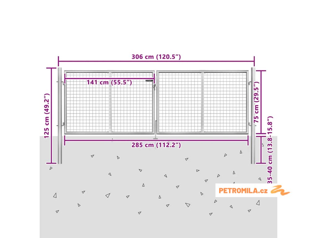 Zahradní branka pozinkovaná ocel 300 x 75 cm stříbrná