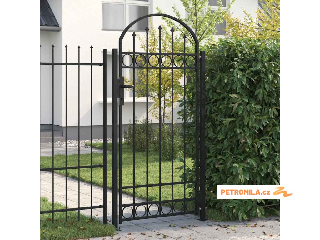 Zahradní branka s obloukem a 2 sloupky 105 x 204 cm černá