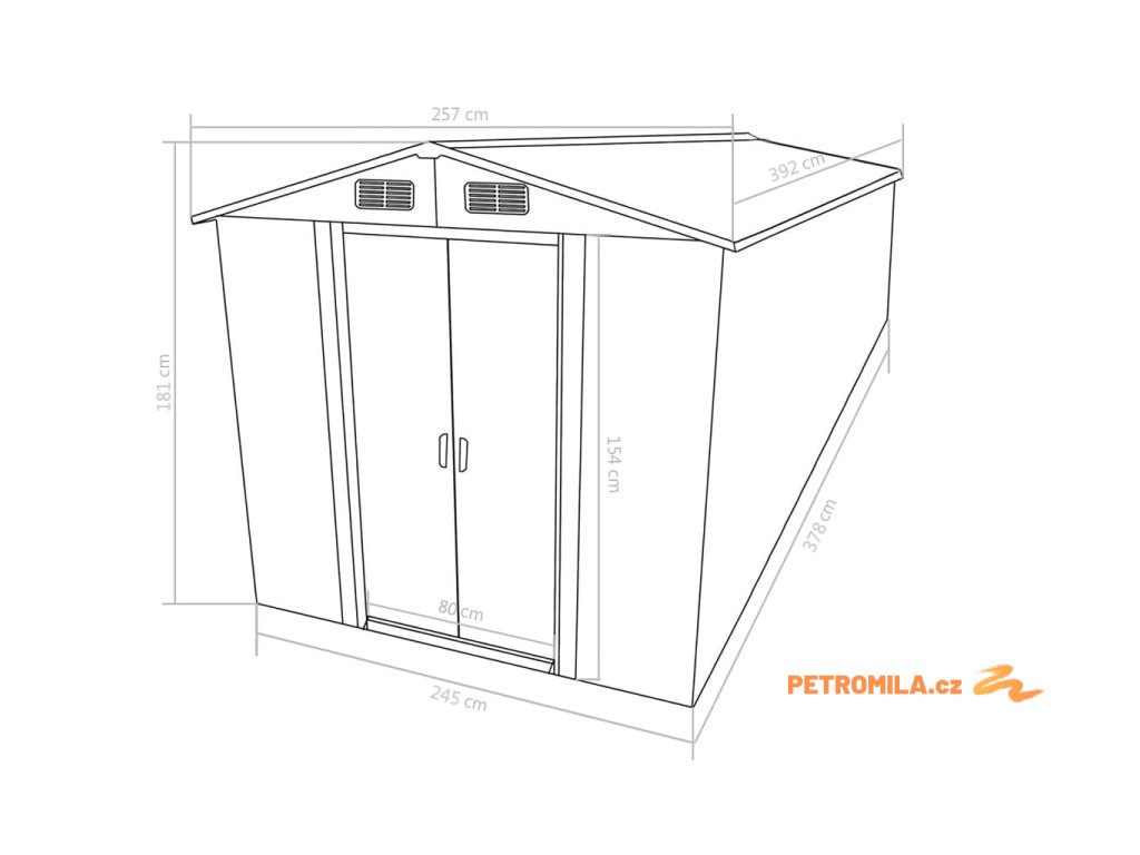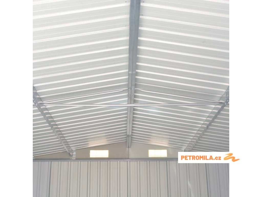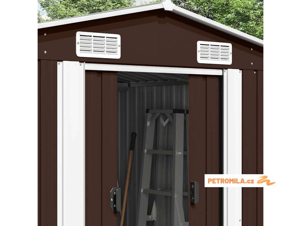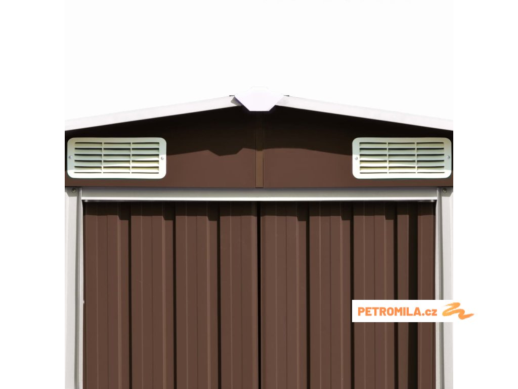 Tento úložný přístřešek má větrací otvory v přední i zadní části, které zajišťují vynikající ventilaci. Dvojité posuvné dveře v přední části umožňují snadný vstup a výstup. Konstrukce z pozinkované oceli spolu s práškovým nástřikem zaručují pevnost a odolnost kůlny na nářadí.