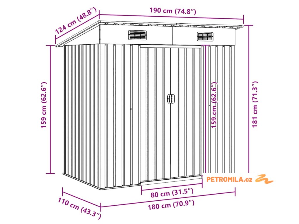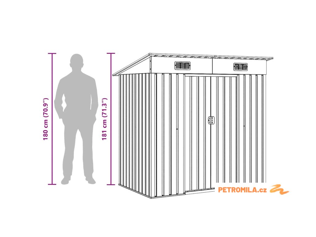 - Praktický design: Tento skladovací domek má v přední části 2 větrací otvory, které zajišťují vynikající větrání. Dvojité posuvné dveře v přední části umožňují snadný vstup a výstup.