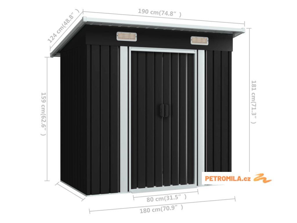- Velikost se střechou: 190 x 124 x 181 cm (Š x H x V)