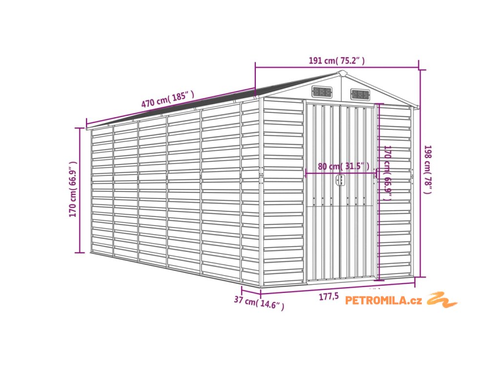- Dostatek úložného prostoru: Tato kovová kůlna poskytuje dostatek prostoru pro uložení palivového dřeva, zahradního nářadí, nábytku, vybavení a dalších věcí.