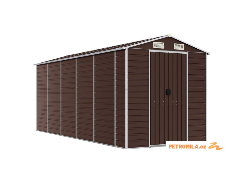 Zahradní domek hnědý 191 x 470 x 198 cm pozinkovaná ocel