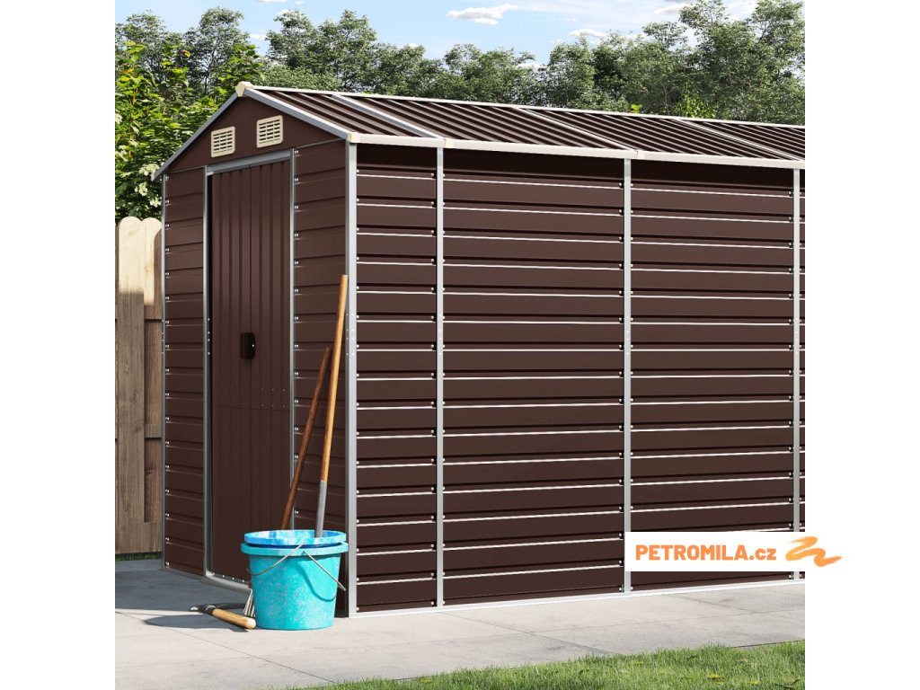 Zahradní domek hnědý 191 x 385 x 198 cm pozinkovaná ocel