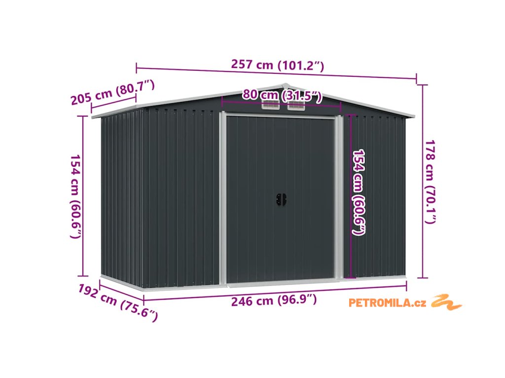 Zahradní domek na nářadí antracitový ocel 257 x 205 x 178 cm