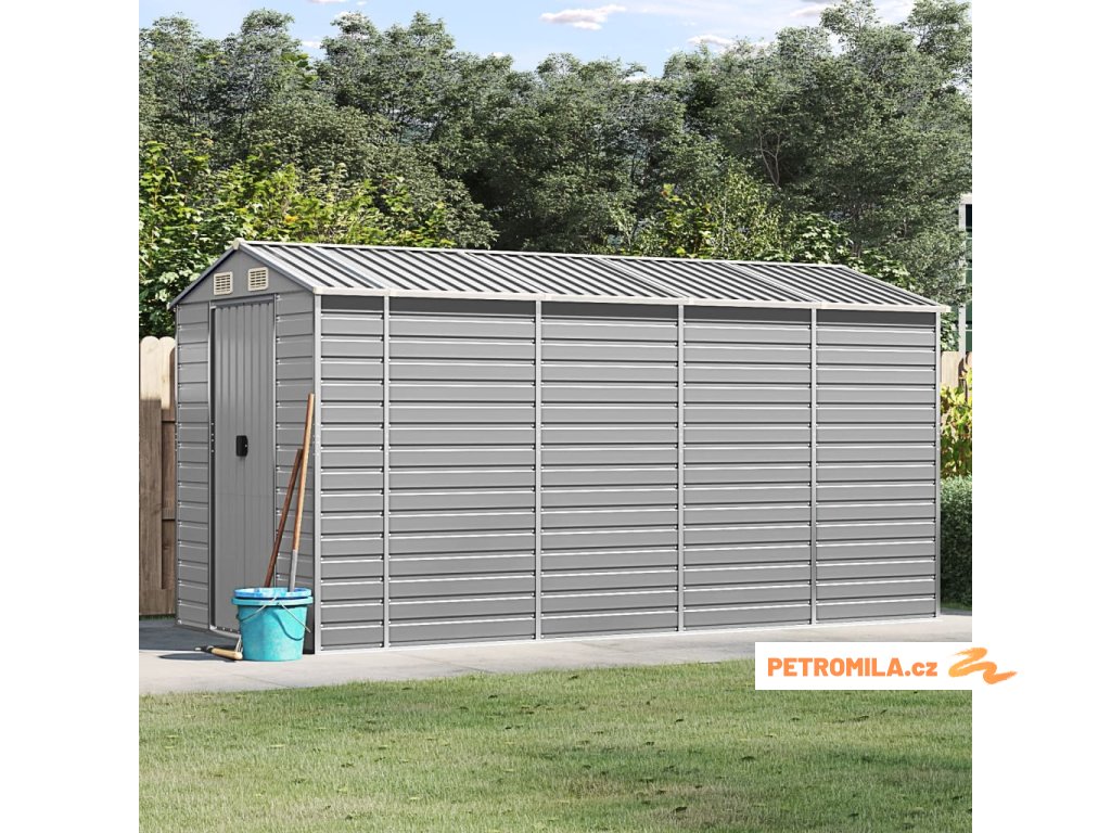Zahradní domek světle šedý 191 x 470 x 198 cm pozinkovaná ocel