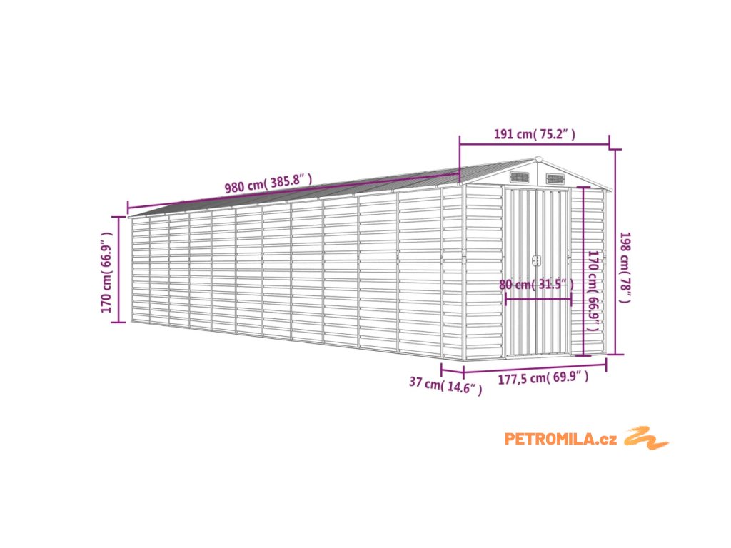 Zahradní kůlna antracitová 191 x 980 x 198 cm pozinkovaná ocel