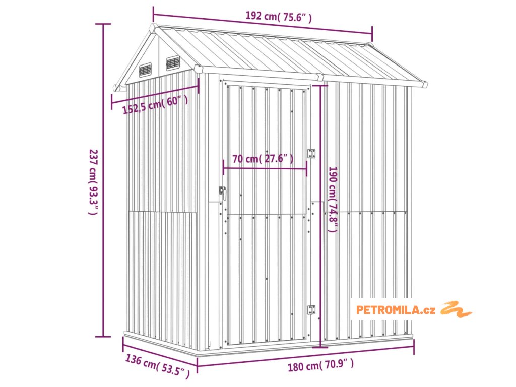- Dostatek úložného prostoru: Tato kovová kůlna poskytuje dostatek prostoru pro uložení palivového dřeva, zahradního nářadí, nábytku, vybavení a dalších věcí.