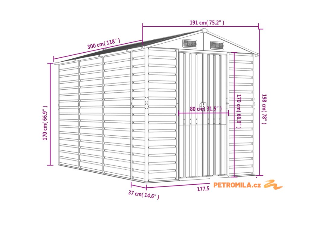 Zahradní kůlna antracitová 191 x 385 x 198 cm pozinkovaná ocel