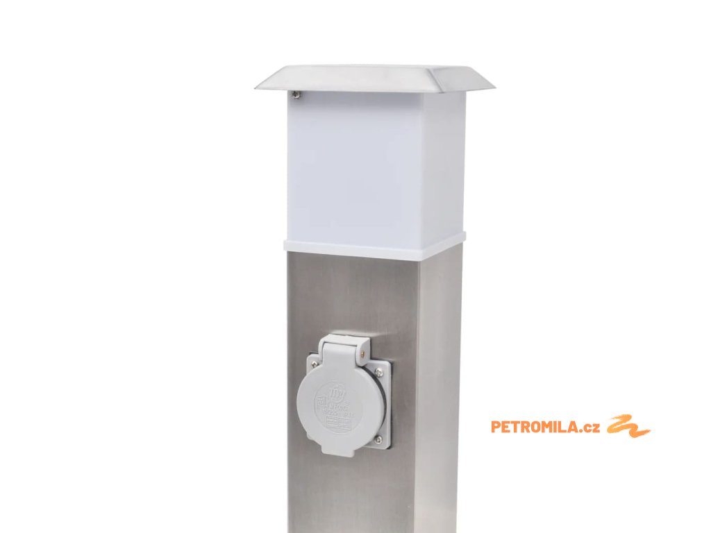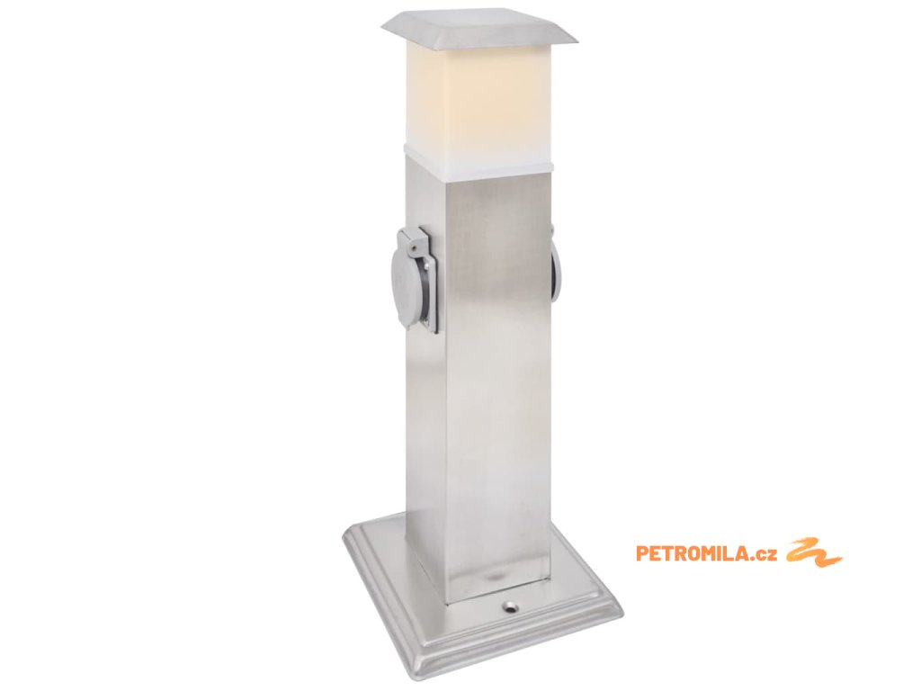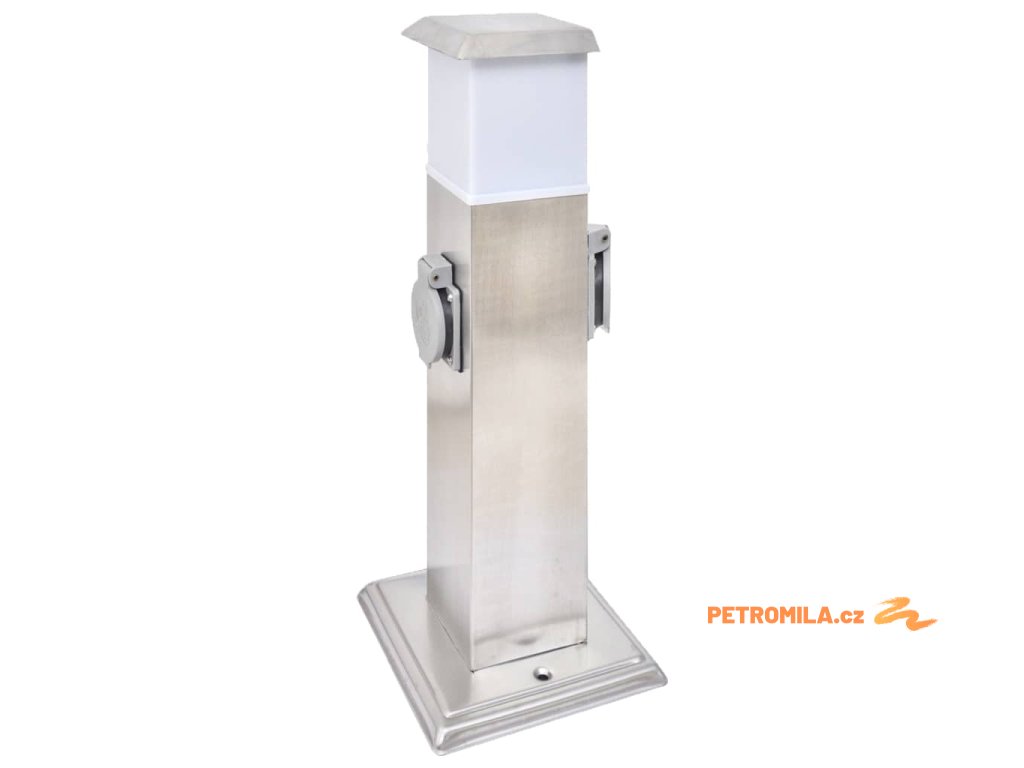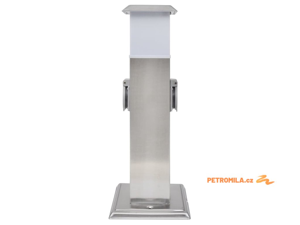 Zahradní elektrická zásuvka sloupek s lampou, nerezová ocel