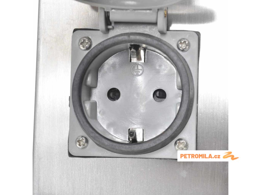- Materiál: pouzdro z nerezové oceli + plastové zásuvky