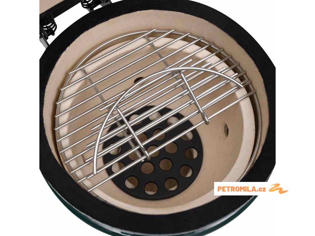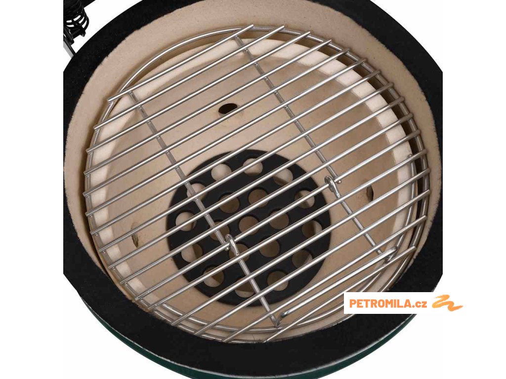 Keramický gril má velmi robustní odklápěcí víko s větracím otvorem a vestavěným teploměrem. Díky vrstvené ventilaci lze snadno řídit přívod vzduchu i teplotu. Vysoce kvalitní keramika s glazurovaným pórovitým povrchem je nejen odolná a esteticky příjemná, ale zaručuje také unikátní vlastnosti pro přípravu chutných, jemně propečených pokrmů! Nohy z práškově lakované oceli přispívají ke stabilitě grilu.