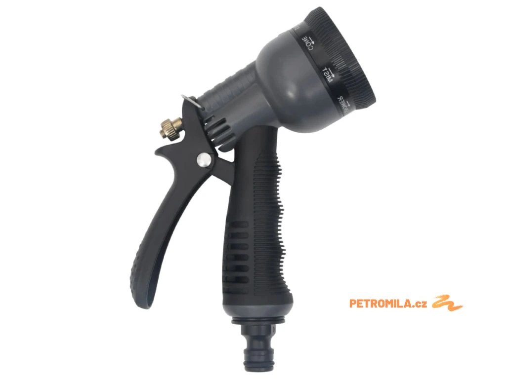 - Rozprašovací tryska s 8 funkcemi: Tato tryska má 8 režimů a otáčením trysky si můžete zvolit typ postřiku, který bude vyhovovat různým účelům zavlažování. Zároveň má protiskluzovou a pohodlnou rukojeť, aby se vám s ní dobře zacházelo.