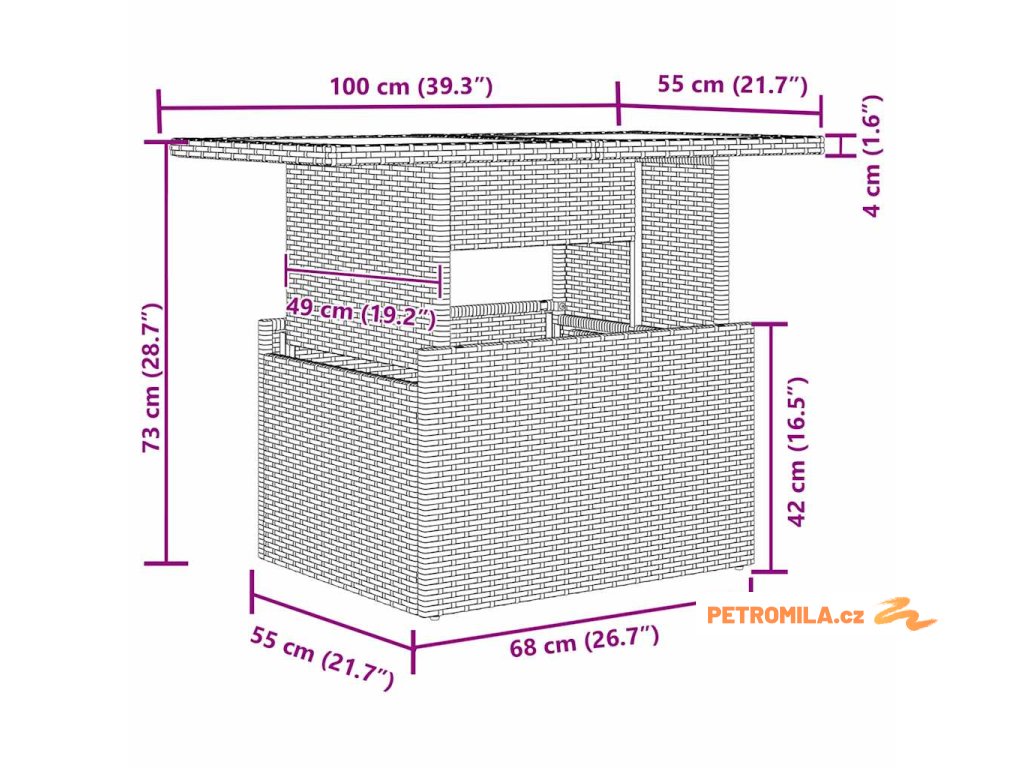 - Odolný rám z poly ratanu: Rám je vyrobený z poly ratanu, který nevadí slunci a špatnému počasí. Tento materiál je sice silný, ale zároveň vypadá skvěle a dodává texturu. Je navržený tak, aby odpovídal modernímu designu a splnil potřeby pro venkovní použití.