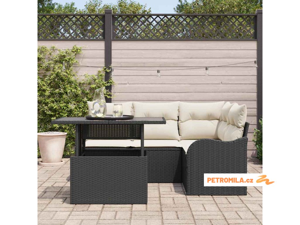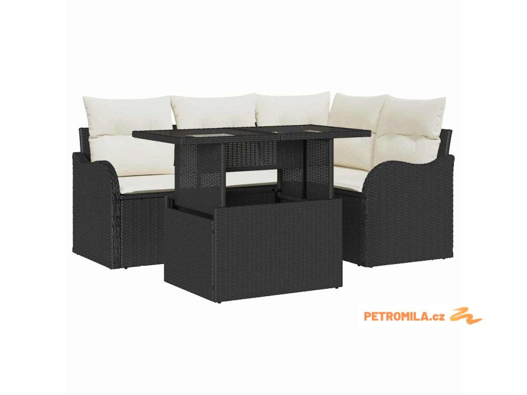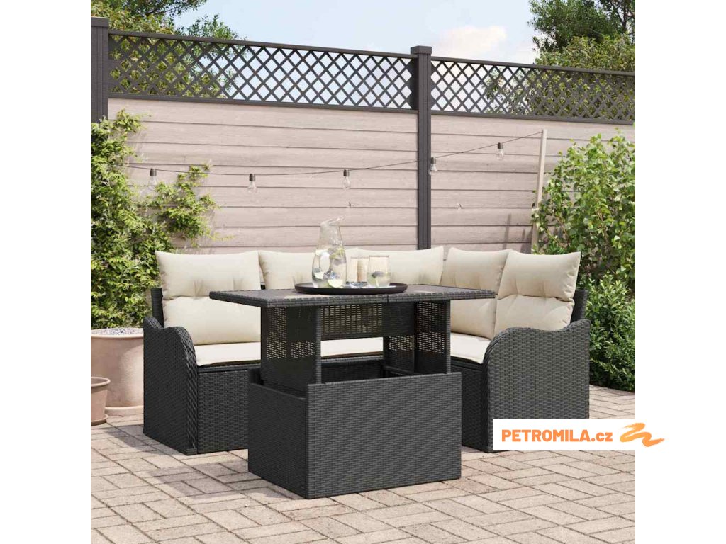 Zahradní jídelní sada s polštářem 5 pcs Černá Poly ratan