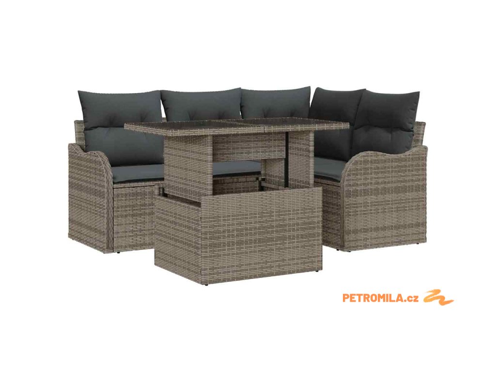 Zahradní jídelní sada s polštářem 5 pcs Šedá Poly ratan
