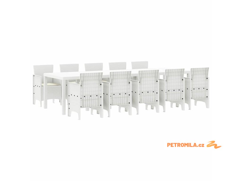 Zahradní jídelní souprava 11 pcs Bílá Poly ratan a ocel