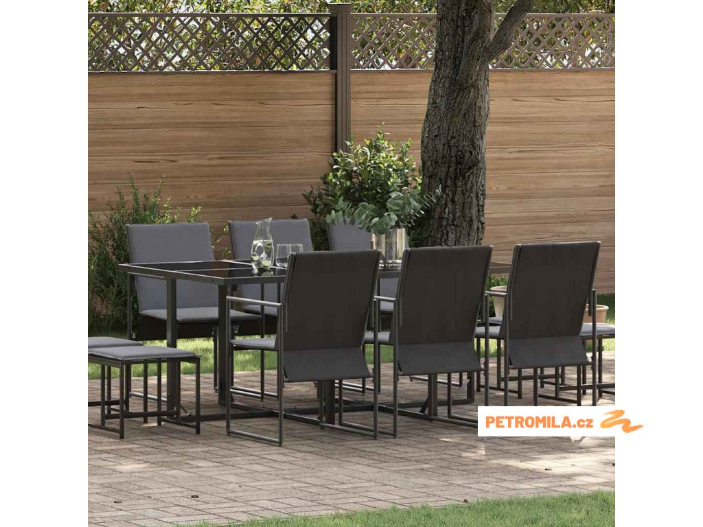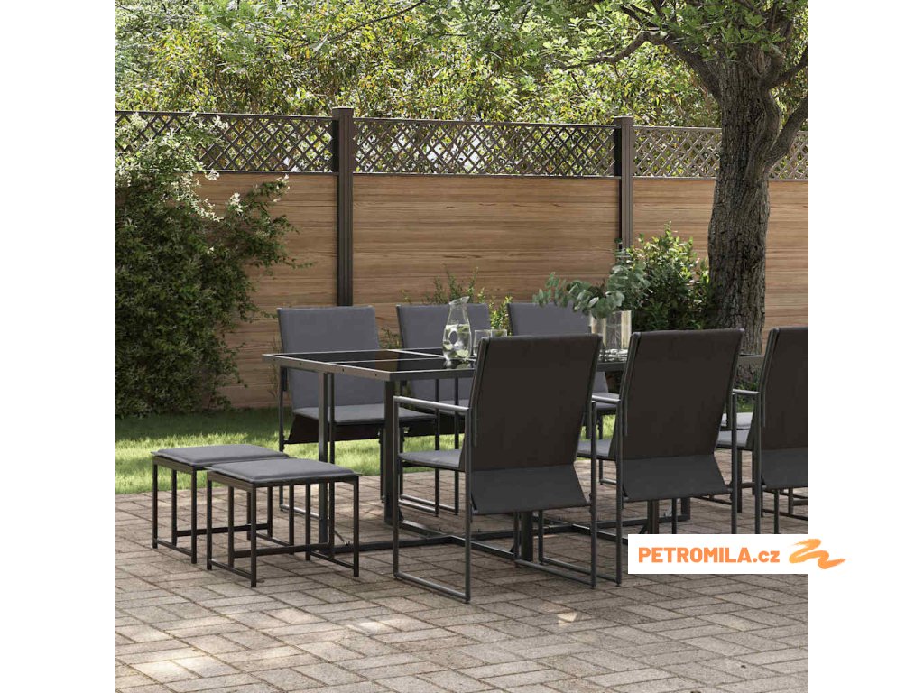 Zahradní jídelní souprava 11 pcs Černá Ocel