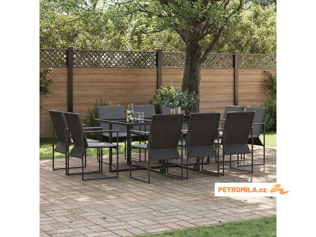 Zahradní jídelní souprava 11 pcs Černá Ocel
