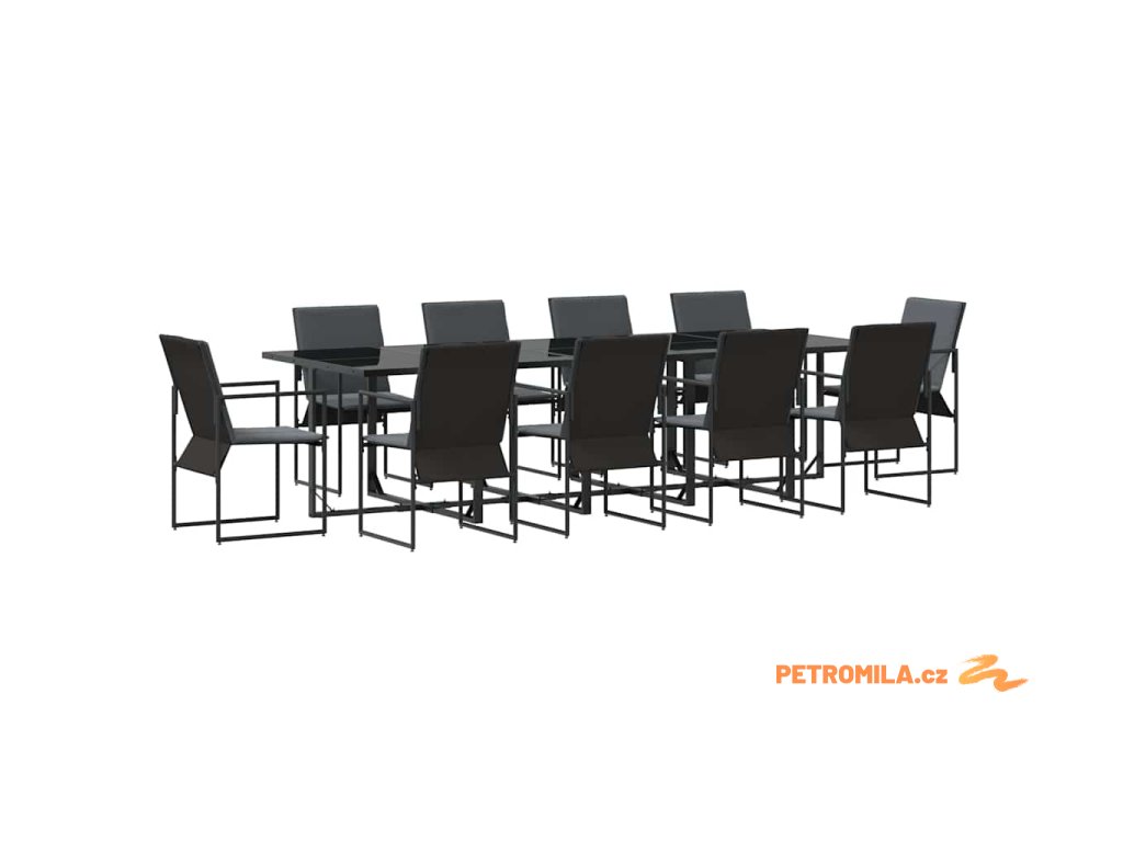 Zahradní jídelní souprava 11 pcs Černá Ocel