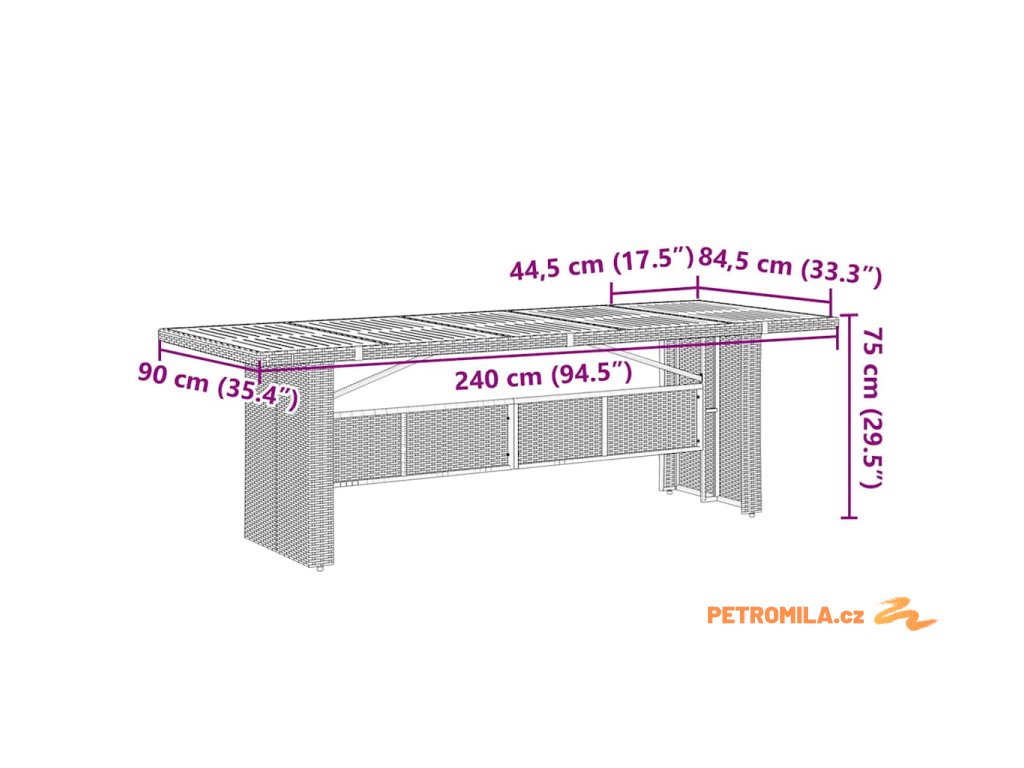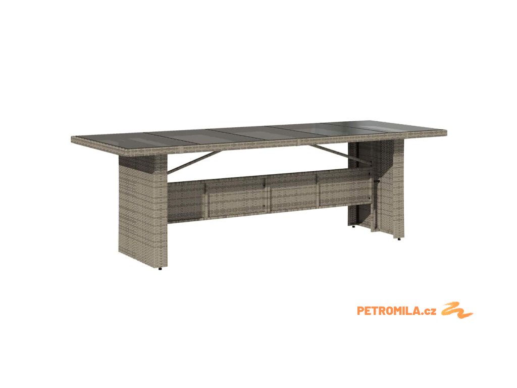 Tato moderní venkovní sada nábytku je parádní mix stylu a funkce, což z ní dělá super volbu pro zahrady a terasy, kde si chceš užívat venkovního stolování nebo jen tak relaxovat. Elegantní obdélníkový tvar dodává moderní atmosféru, je jednoduchý a praktický, žádné zbytečnosti. Nabízí dostatek místa na sezení, ideální pro letní večírky nebo pohodové rodinné chillování. Představ si, jak si užíváš čas na terase, povídáš si s kamarády, obklopený odolným polyratanem a hladkými liniemi, suitable for co vyzařují pohodlí a styl.