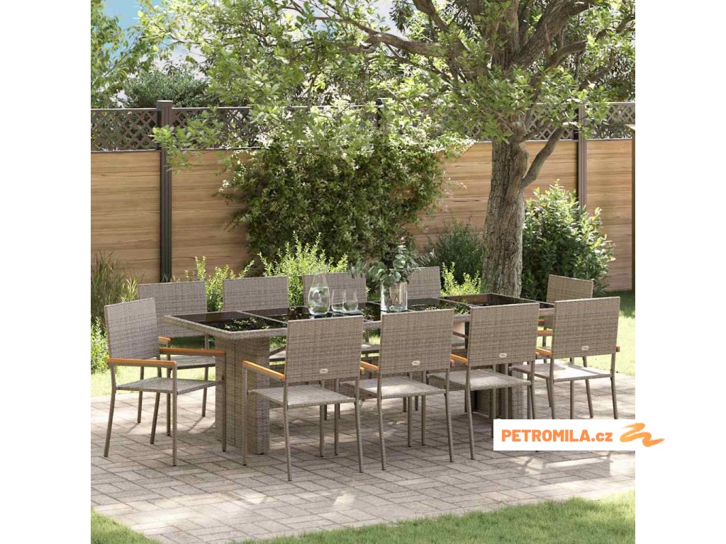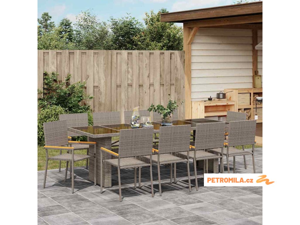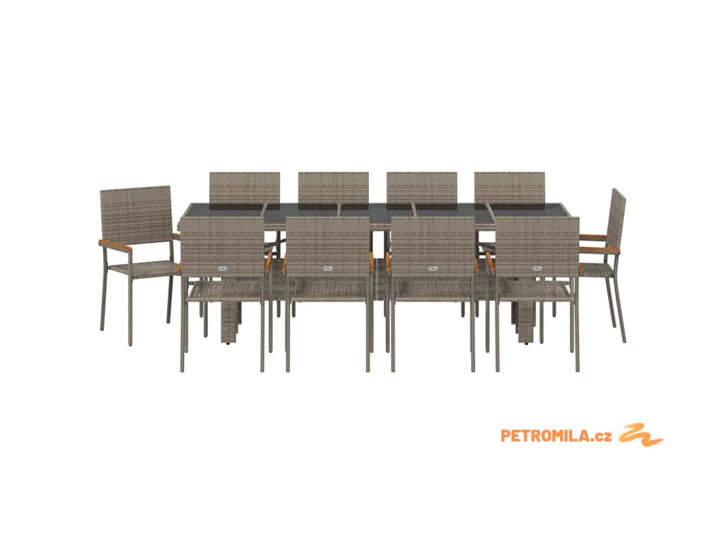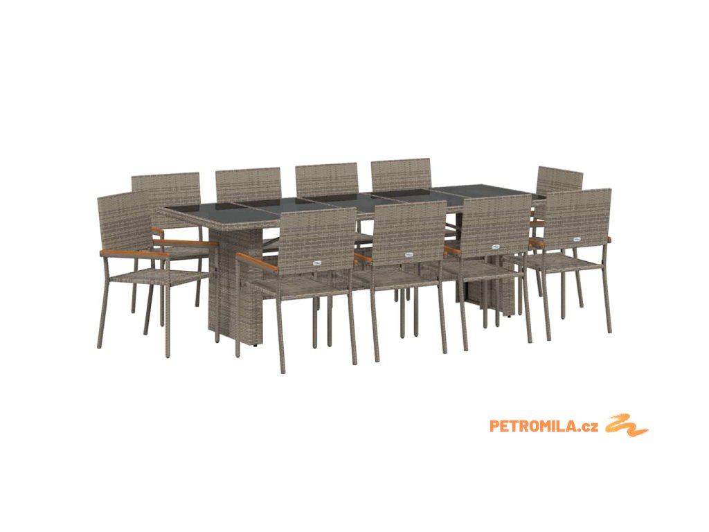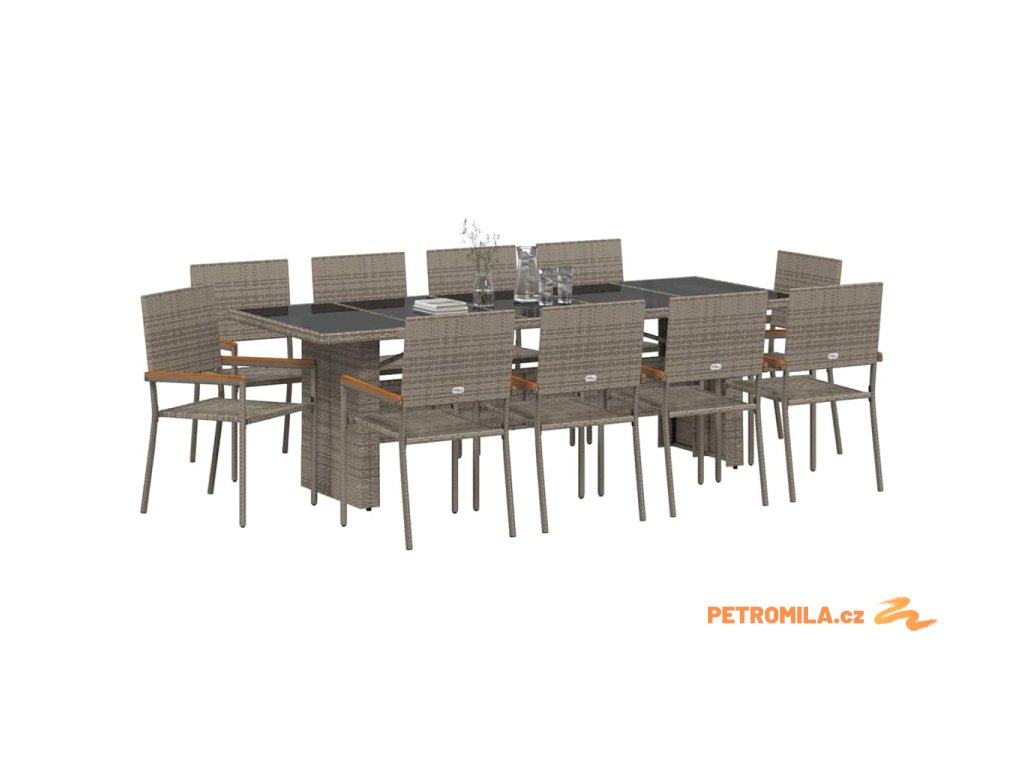 Zahradní jídelní souprava 11 pcs Šedá Poly ratan