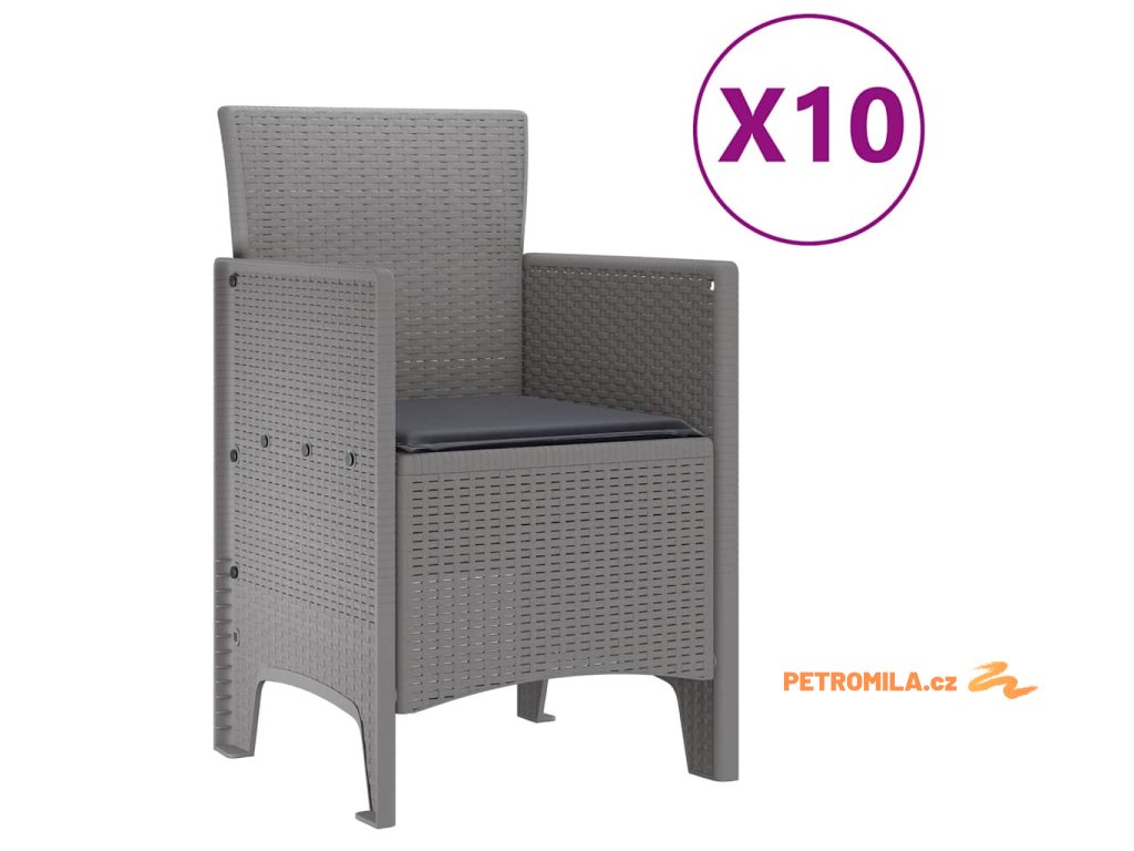 9dílný zahradní jídelní set s poduškami světle šedý polyratan