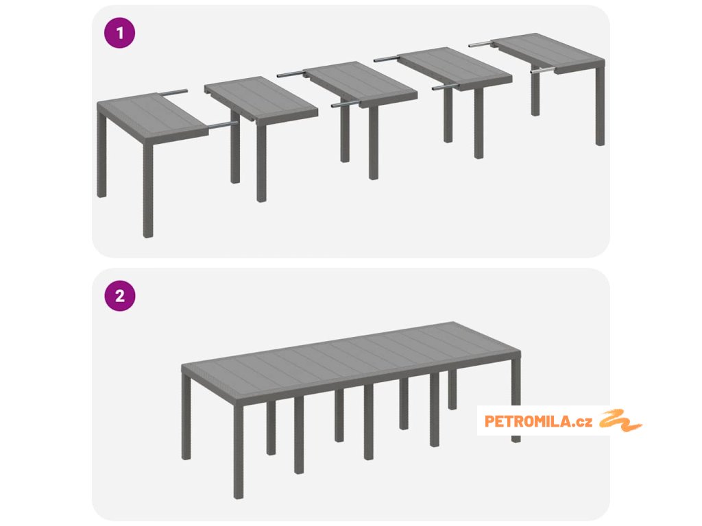 - Univerzální venkovní využití Perfektní pro zahrady a terasy, tento set se skvěle přizpůsobí různým venkovním kontextům. Jeho elegantní design vylepšuje jakýkoli prostor, což ho činí vhodným pro stolování, socializaci a oslavu výjimečných příležitostí. Bez problémů přecházející od běžného denního jídla po útulné večerní sezení, slouží jako středobod jakéhokoli shromáždění.