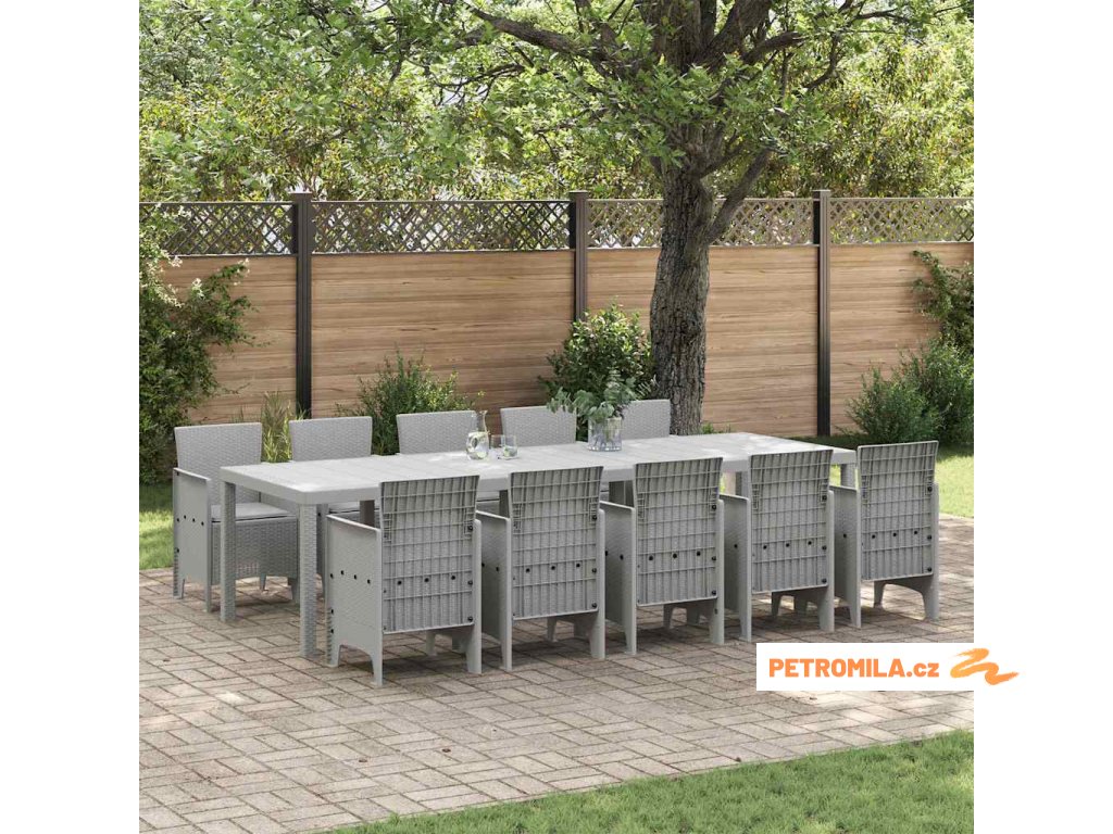 Zahradní jídelní souprava 11 pcs Světle šedá Ratan a hliník