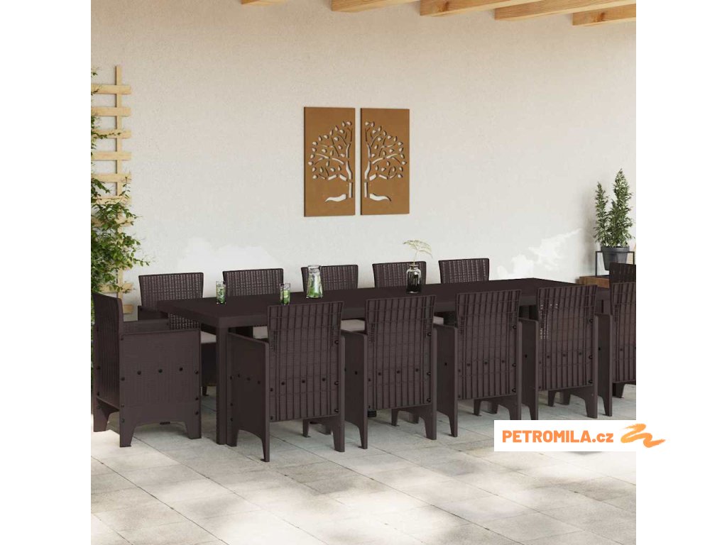 Zahradní jídelní souprava 13 pcs Hnědá a taupe Poly ratan