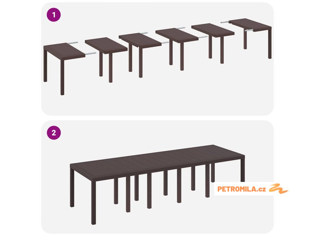 Tento venkovní jídelní set s ergonomickým designem spojuje jednoduchost a funkčnost moderního nábytku a láká na venkovní stravování. Vytvořen speciálně pro zahrady a terasy, zve rodinu a přátele k relaxaci a venkovnímu hodování v teplých letních dnech. Obdélníková konfigurace setu s hladkým povrchem a matným finišem dodává nádech elegance jakémukoliv venkovnímu prostoru. Díky ergonomickému designu je sezení pohodlné, ideální pro dlouhé diskuse a uvolněné večeře pod sluncem. Poly ratanové materiály v kombinaci s moderním stylem dělají z setu středobod vaší zahrady.