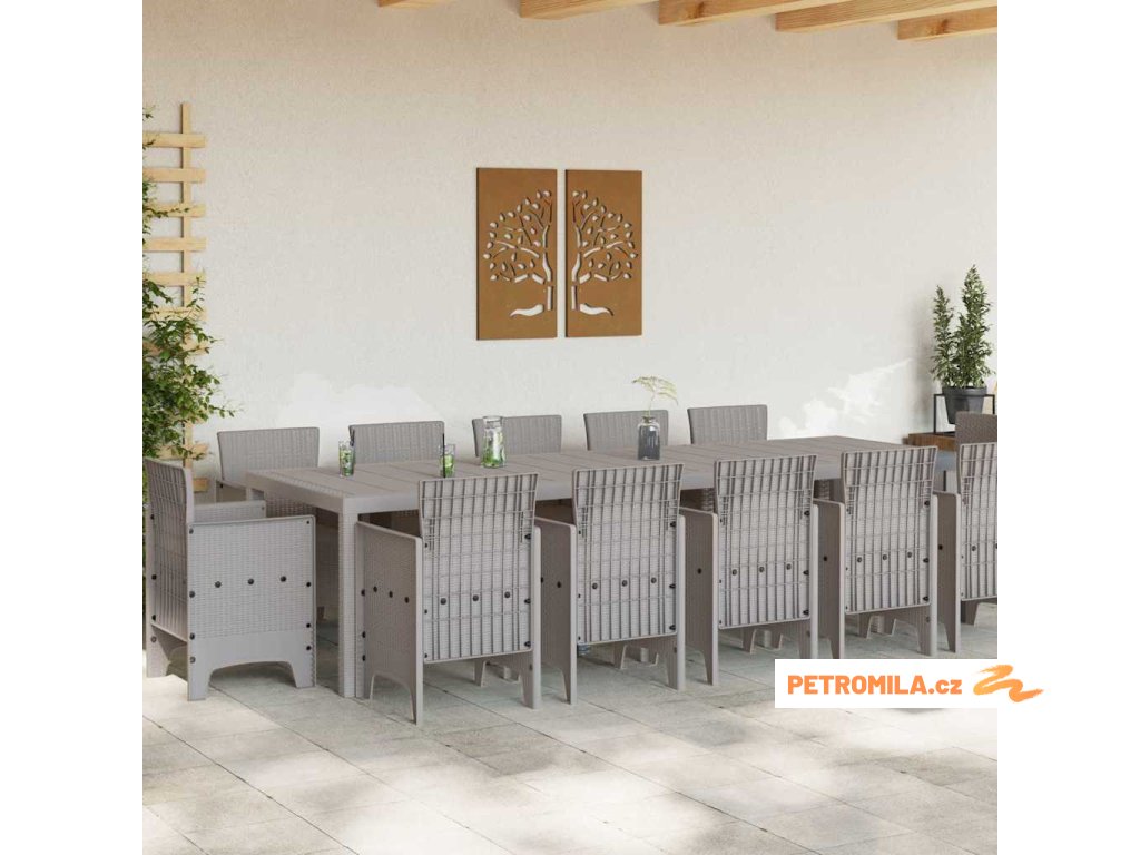 Zahradní jídelní souprava 13 pcs Světle šedá Poly ratan