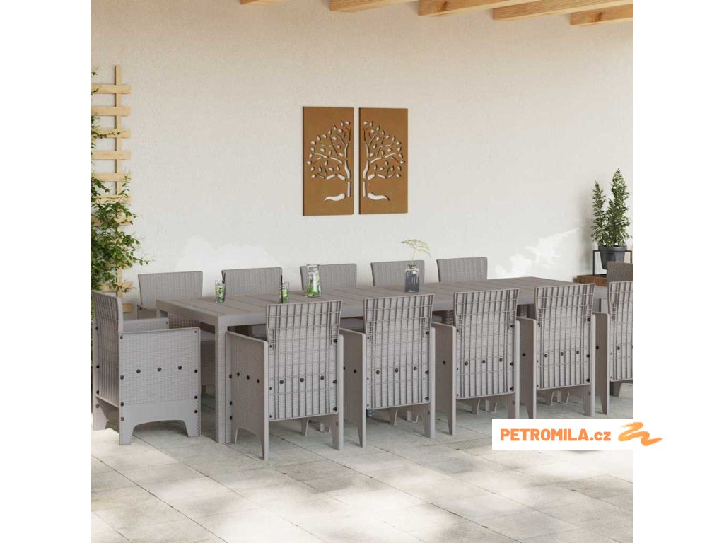 Zahradní jídelní souprava 13 pcs Světle šedá Poly ratan