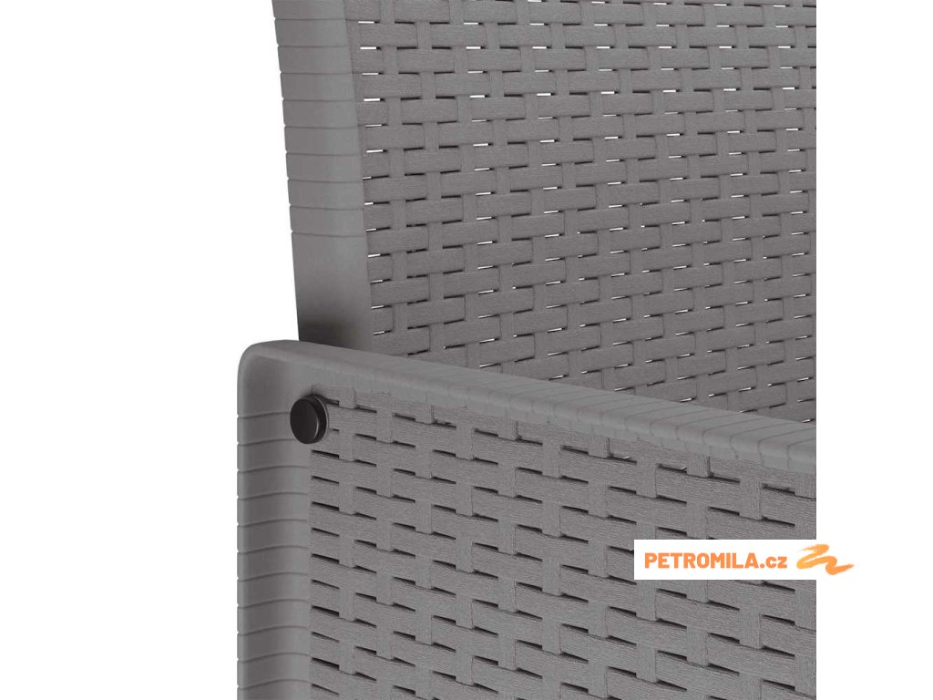 - Poly ratanová konstrukce Celý set je z kvalitního poly ratanu, který je trvanlivý a odolává různému počasí. Jeho moderní textura dodává vzhledu šmrnc a stabilitu během venkovní sezóny. Matné povrchy přidávají sofistikovaný nádech, který se skvěle hodí k přírodnímu prostředí.