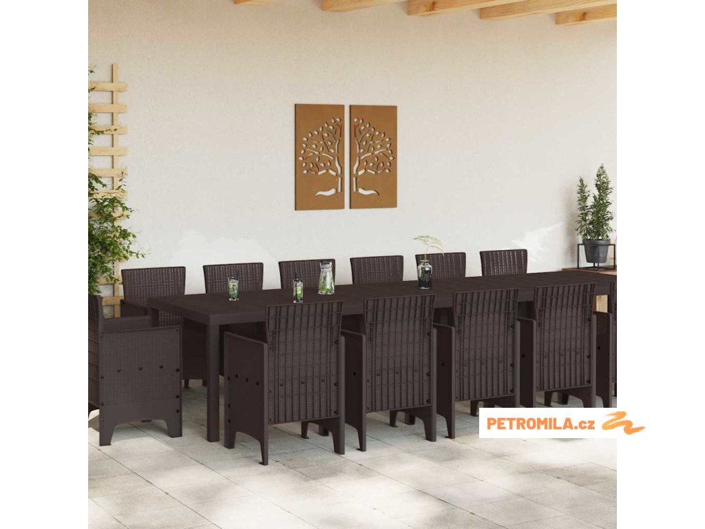 Zahradní jídelní souprava 15 pcs Hnědá Ratan Polt