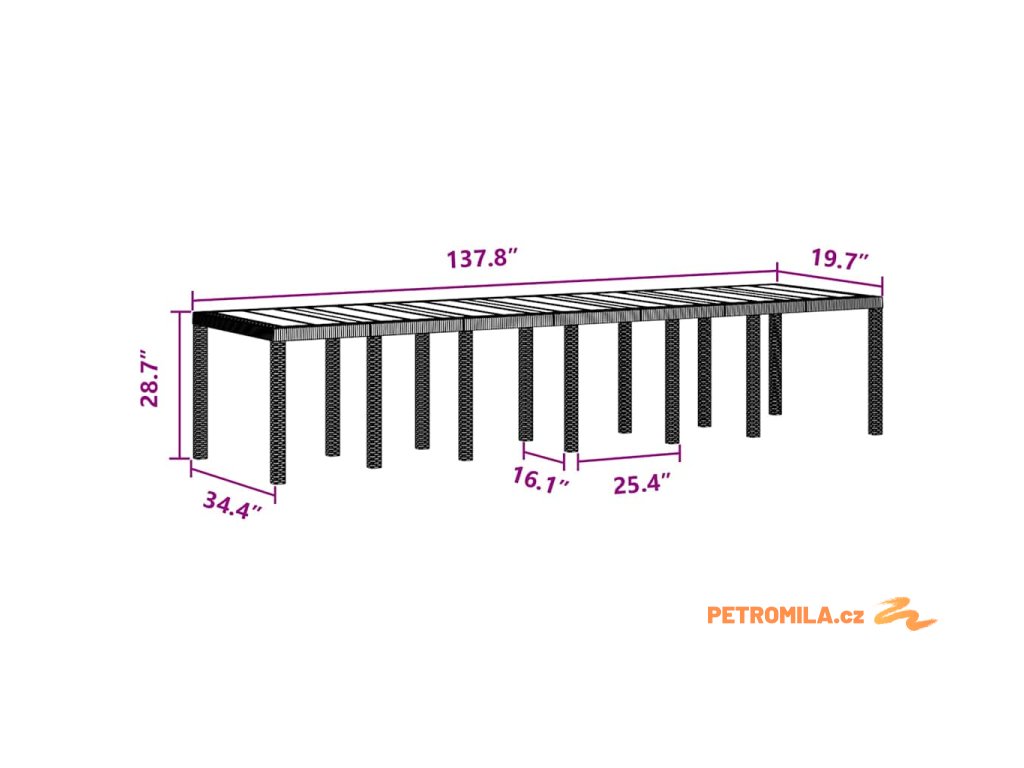 - Sofistikovaný design: Tato zahradní jídelní souprava zosobňuje štíhlý a minimalistický styl, což z ní činí ideální doplněk pro moderní venkovní prostory. Její moderní estetičnost je definována čistými liniemi a obdélníkovým tvarem, který bezproblémově zapadá do různých dekorativních stylů, čímž zvyšuje jak funkci, tak formu ve vaší zahradě.