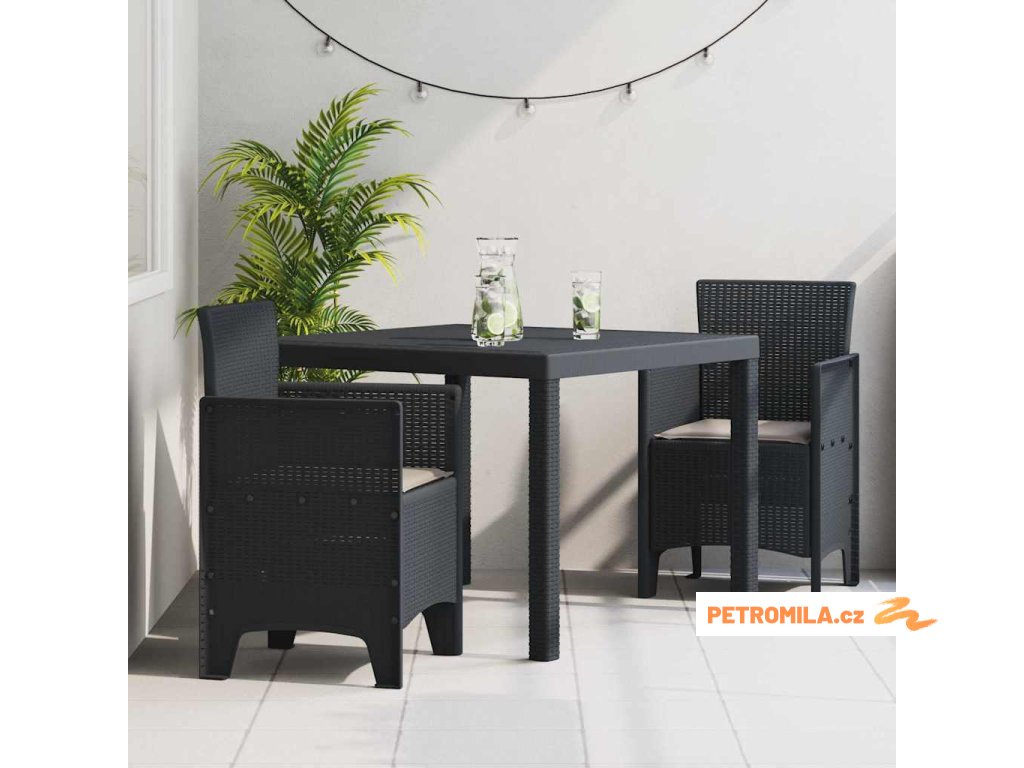 Zahradní jídelní souprava 3 pcs Antracit Ratan Polt