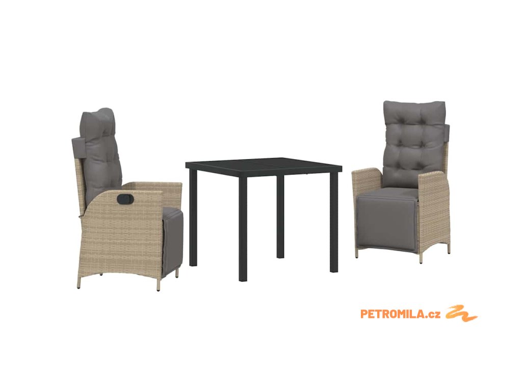 Zahradní jídelní souprava 3 pcs Béžová Poly ratan
