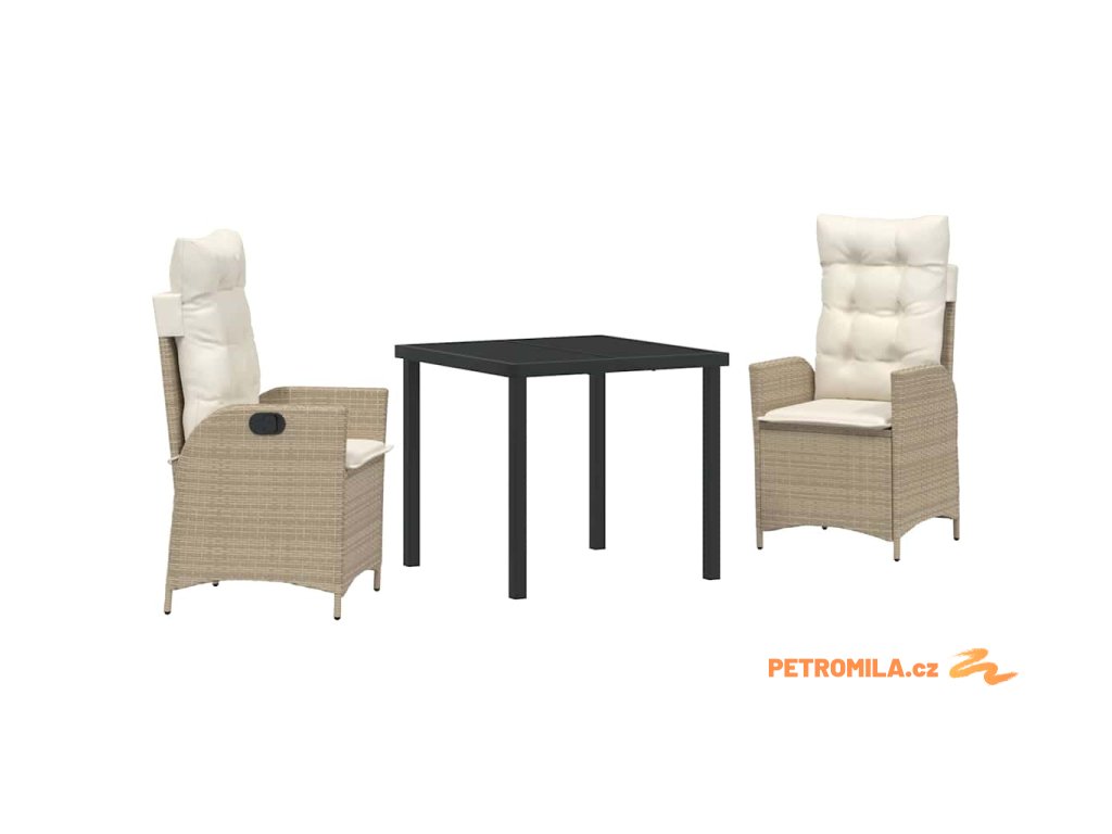 Zahradní jídelní souprava 3 pcs Béžová polyratan