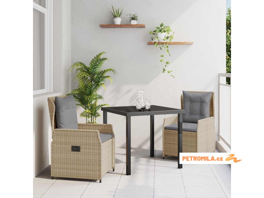 Zahradní jídelní souprava 3 pcs Béžová polyratan