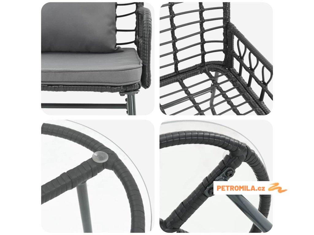 - Materiál z polyratanu: Set je vyroben z polyratanu, takže je dost odolný a weatherproof. Jeho hladký povrch dodává vaší zahradě skvělý vzhled. Je pohodlný a stabilní, takže se můžete klidně posadit a relaxovat.