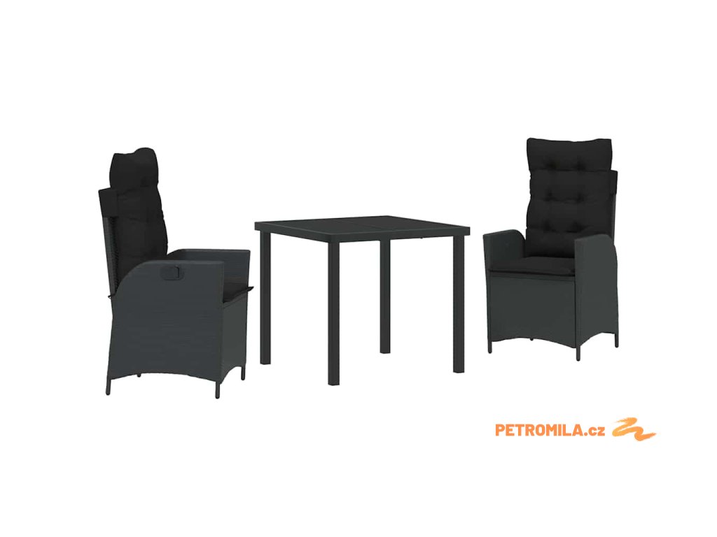 Zahradní jídelní souprava 3 pcs Černá polyratan