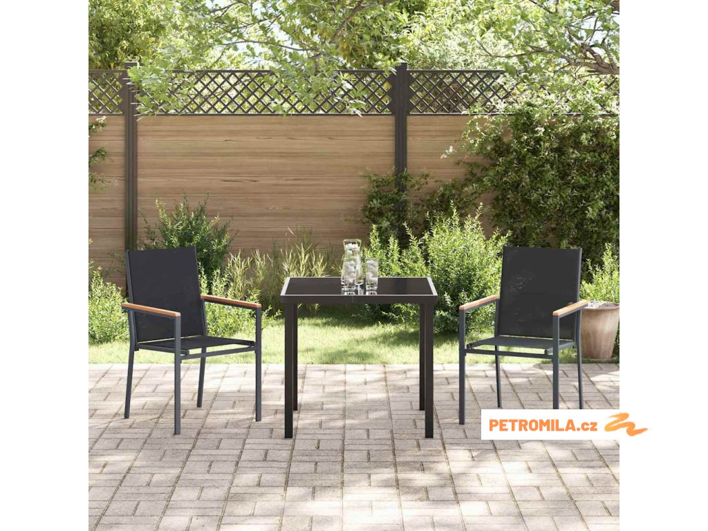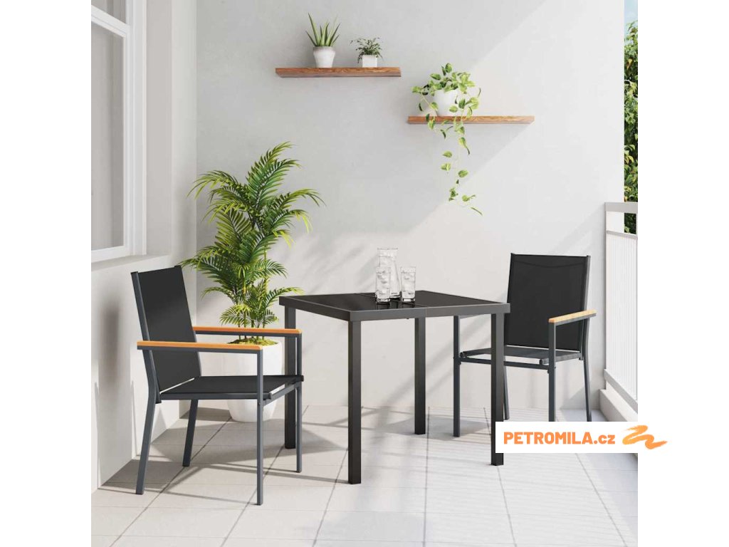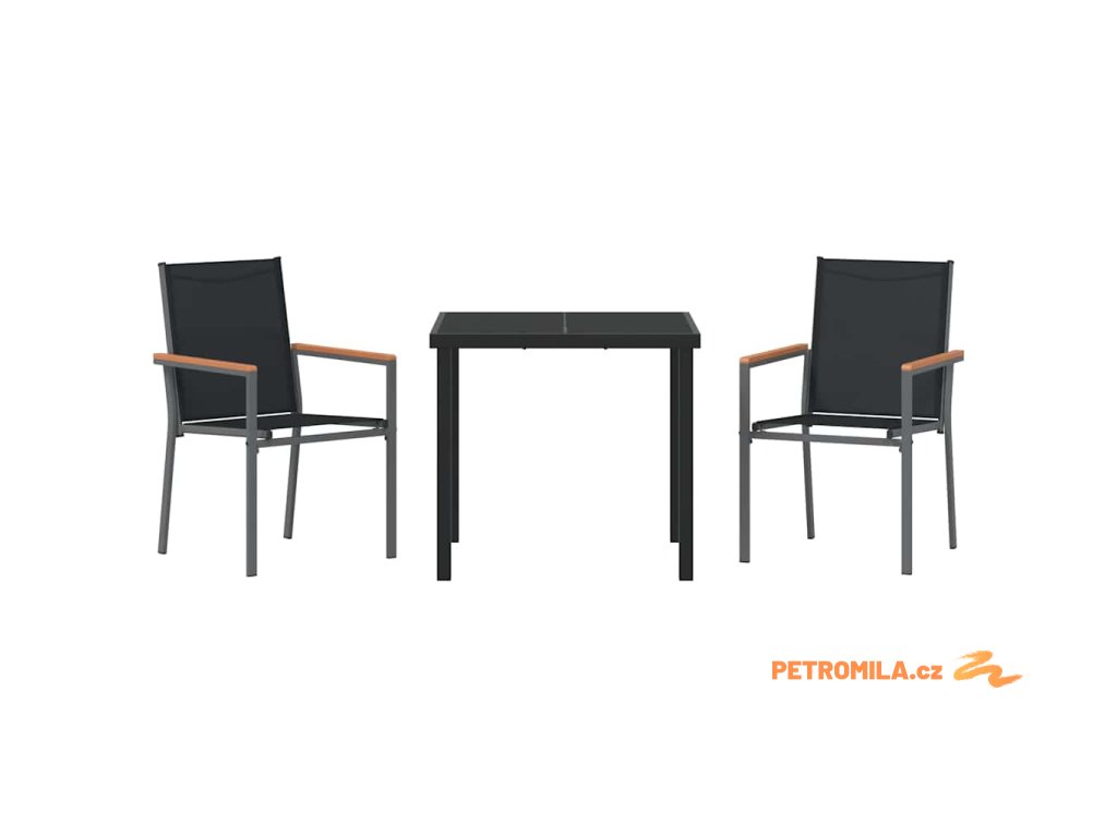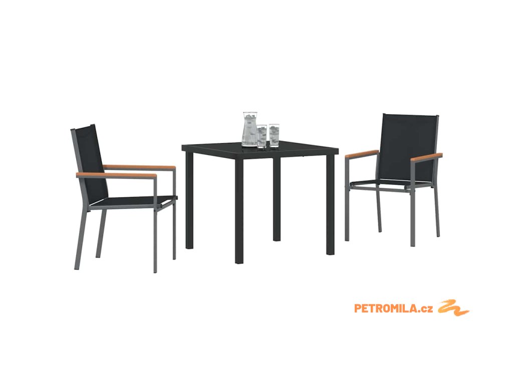 Zahradní jídelní souprava 3 pcs Černá Textilene a ocel